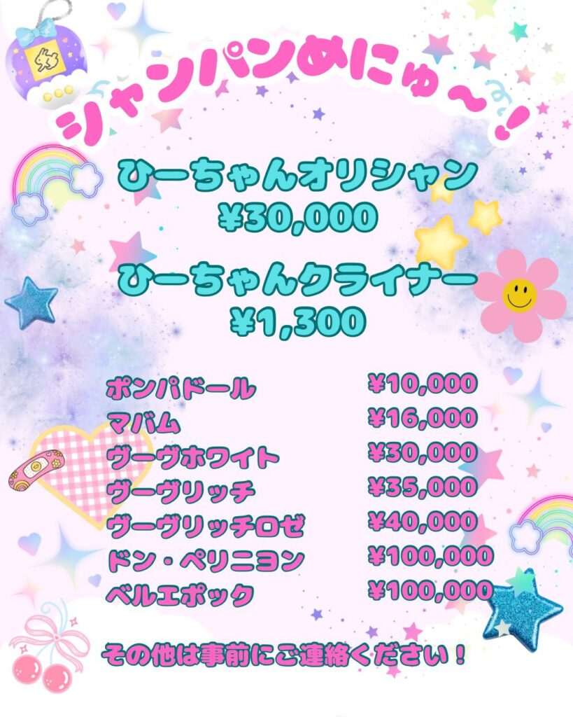 ひーちゃんオリシャンやクライナーをはじめ、各種シャンパンでで一緒にお祝いしましょう💖