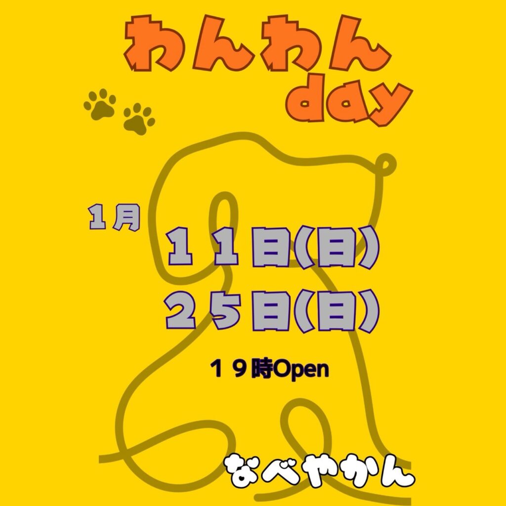 1月11日(日)・25日(日)なべやかんはわんわんDAYです🐶