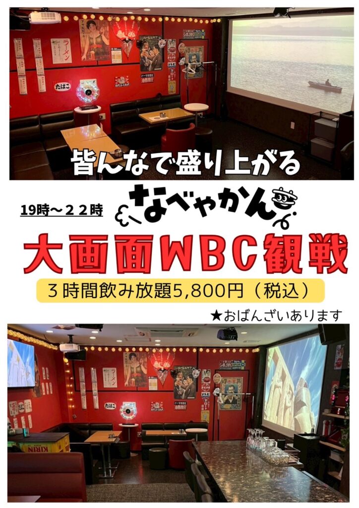 3月6日・7日・8日・10日の4日間WBC観戦イベントを開催いたします!!